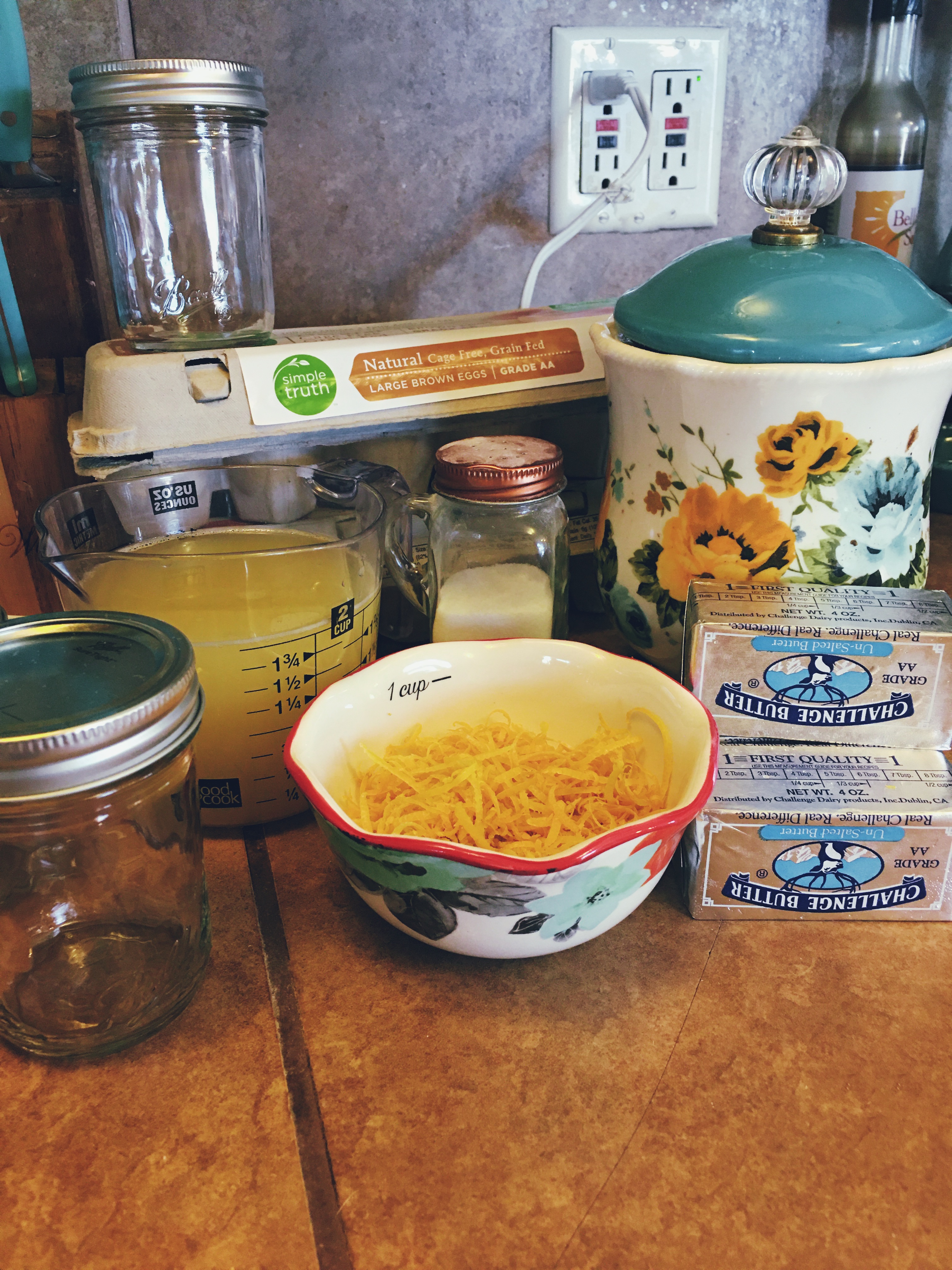 In Grandma and Papa’s back yard they have a lemon tree so Papa told my mom to take some home with them. We got an entire Yeti cooler full of lemons from Papa Don’s lemon tree! I was pretty excited, because getting a whole bunch of lemons means 2 things; lemon curd and another special treat (which will be in my next post)! Today I get to make lemon curd with my sister Kalani and my Mom. I’m very exited for this, especially because this is naturally gluten free, so I don’t have to experiment and make sure if works with GF flour or anything. So lets go ahead and start making this delicious sweet treat!